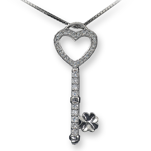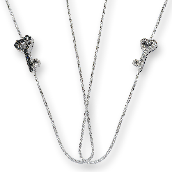 Diamanti white o diamanti black, in Oro Bianco o Rosa: Questa collezione esprime l'essenza della preziosità, l'eleganza, la raffinatezza in un solo simbolo: Una chiave a forma di cuore...