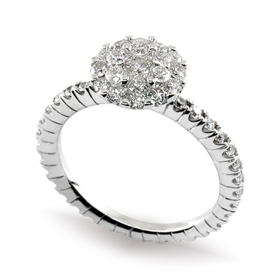 Grazie ad un sistema brevettato di incastonatura, la linea 19 riesce a coniugare alla spettacolare eleganza, una luce unica, e la forma di un diamante a reggere le pietre preziose. Semplicemente incantevole.