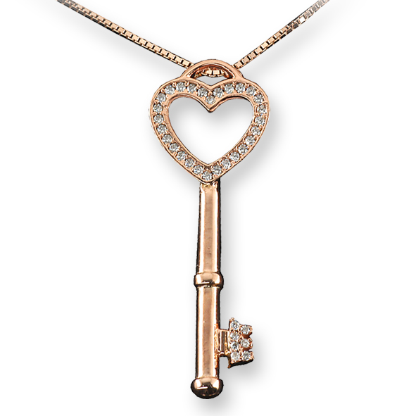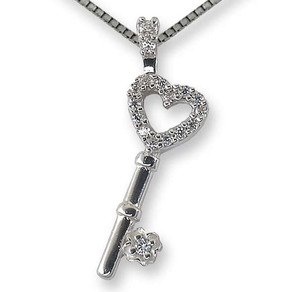 Diamanti white o diamanti black, in Oro Bianco o Rosa: Questa collezione esprime l'essenza della preziosità, l'eleganza, la raffinatezza in un solo simbolo: Una chiave a forma di cuore...