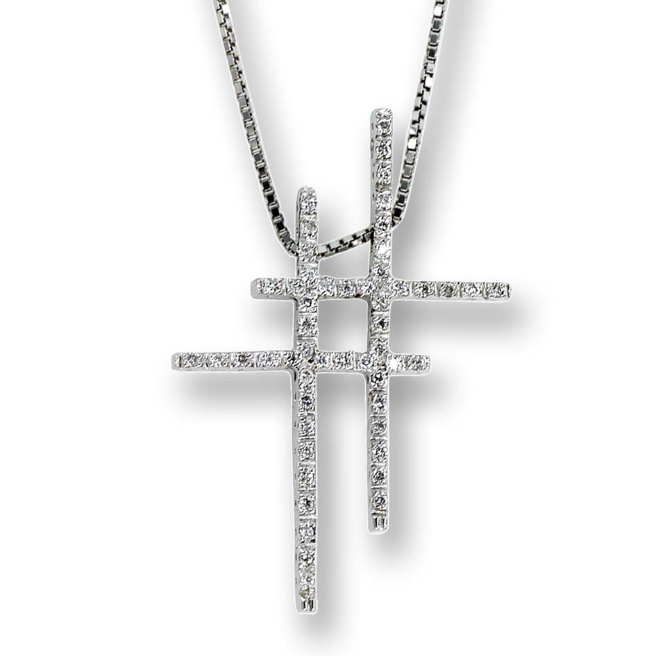 Doppia croce Oro 750 c/ diamanti