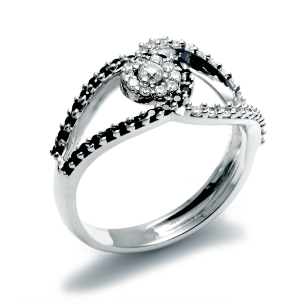 Coll."Abbracci"- Anello oro c/diam. - Ct. 0,38 gr.5,50 Diamanti Neri ct. 0,25