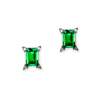 Coll: JJ: Orecchini in Oro con diamanti e p.n.ric. - Ct. 0,08 gr.2,00 Smeraldo Nat. Ricristallizzato ct.1,64