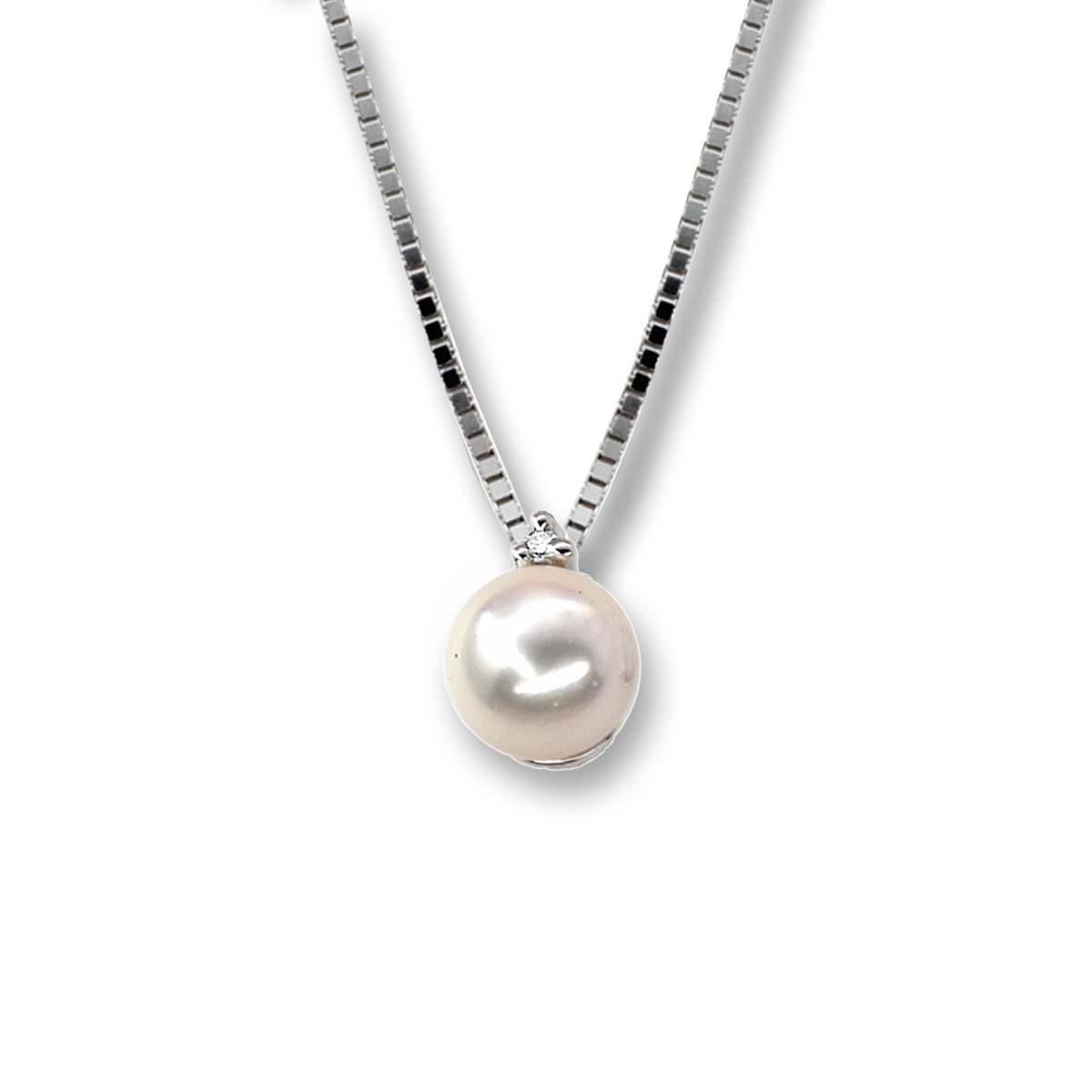 Coll: JJ: Pendente in Oro con diamanti+perla a.d. - Ct. 0,01 gr.1,50 Perle Nat. Acq.Dolce diam. 6 mm