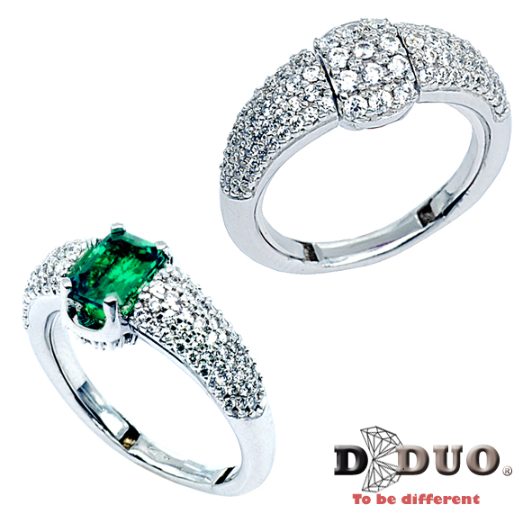 Coll."DDUO"- ANELLO con Diam. e P.Nat. - Ct. 0,97 gr.7,00 Smeraldo Nat. ct.0,90